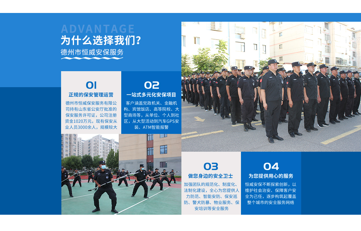 德州市恒威安保服務(wù)有限公司,注冊資金1020萬元。是經(jīng)山東省公安廳批準(zhǔn)、德州市工商管理局登記注冊、具有獨(dú)立法人資格的專業(yè)保安服務(wù)公司,下設(shè)10個(gè)職能科室和業(yè)務(wù)部...